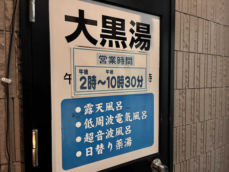 最後は露天風呂で一人だったので、「やっぱ大黒湯サイコー」と呟きニヤニヤ。