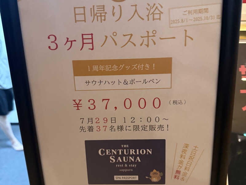 本日は3ヶ月パスポートの発売日❗️日勤終了後にすかさずセンチュリオンへ❗️💨売り切れ必至の3カ月パスポート😮無事パスポートゲット😆限定37枚で今回は25番❗️3日間の発売期間だけど初日でギリギリ❗️😳今回のパスポートには1周年記念のサウナハットとボールペンが付いてくる❗️😆コレは嬉しい😆何はともあれ無事購入❗️😆