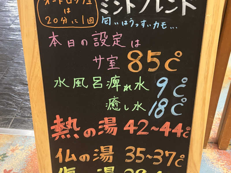 水風呂の温度がやや高かったので、もうちょい冷たければなおよし。