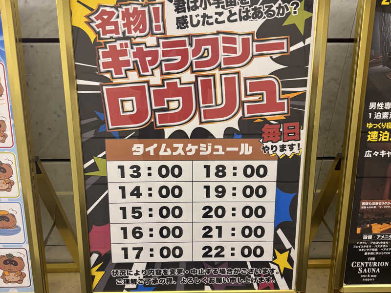 サウナ室:熊サウナ、セルフロウリュ、ウォーリュ有り。タオルマットなし、12分計有り。