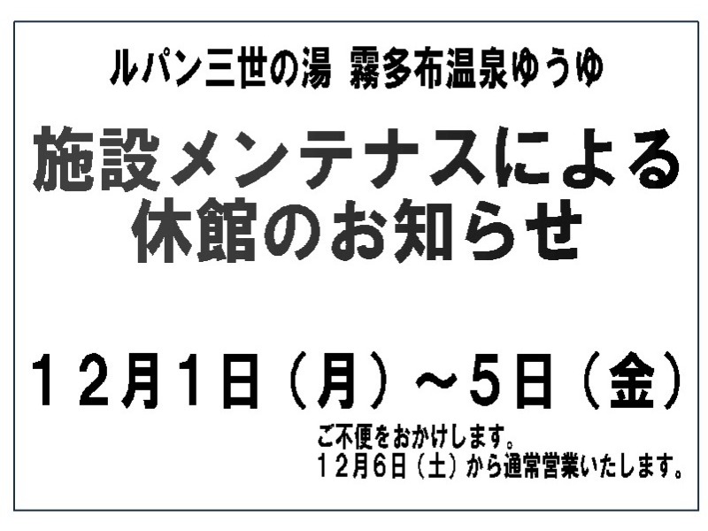 施設メンテナンスによる休館のお知らせ