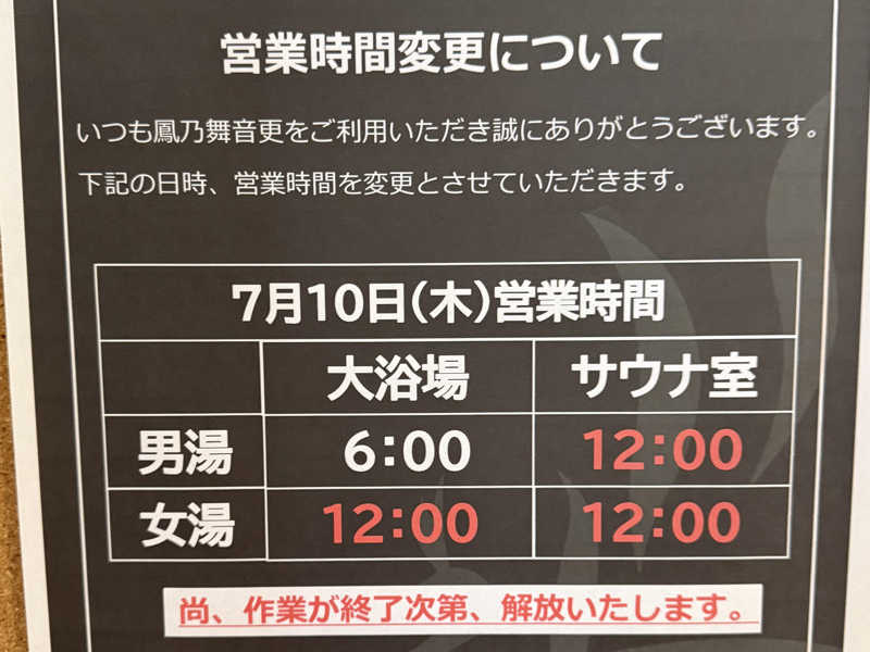 今日は夜勤前のルーティンでホーム鳳乃舞♨️