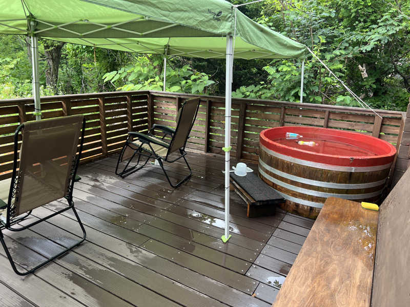 露天スペースに寝転べるところ5台。空を見ながら外気浴。きっちり椅子を洗えるシャワーもそれぞれ付いている。