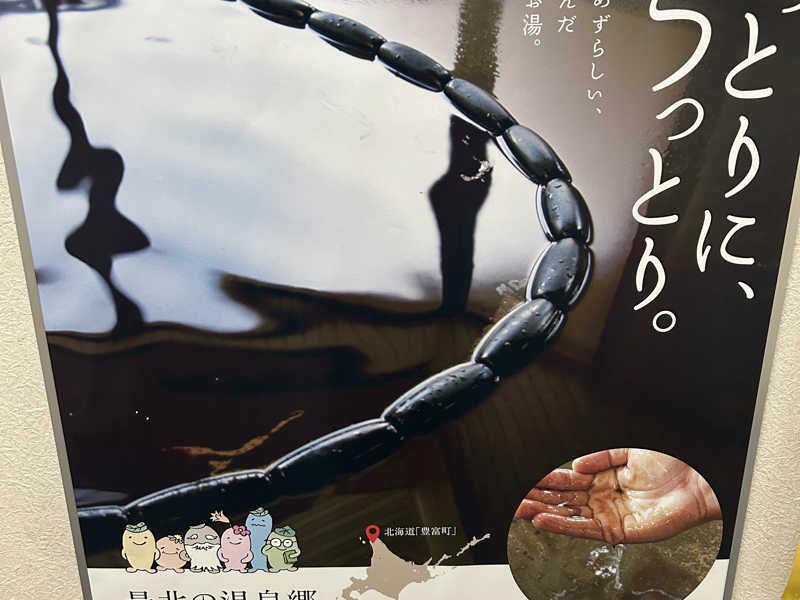 日本最北端の温泉郷。温泉に石油分が含まれており、世界には二つ、日本にはただ一つともいわれるほど希少な温泉。皮膚疾患に悩む方々からは「奇跡の湯」と呼ばれている。たしかに湯の表面にラーメンの油分のようなのが浮かんでる(笑)