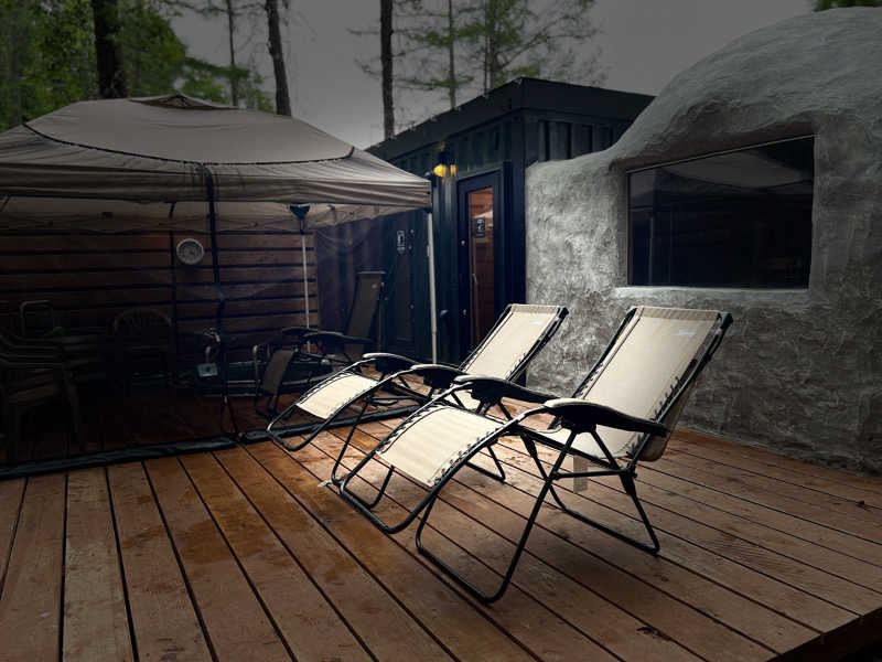 露天風呂に行くと元洗い場か?と思われる場所があり、マットをひいて外気浴……たまらんんん😇