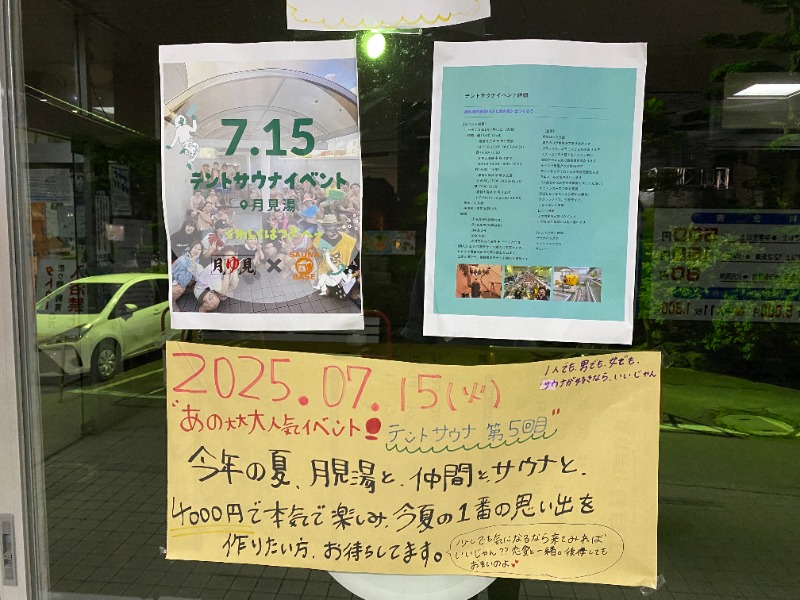 月見湯に到着すると、1回目の熱波を終えた洸さんとすれ違って、空いてますと言われる