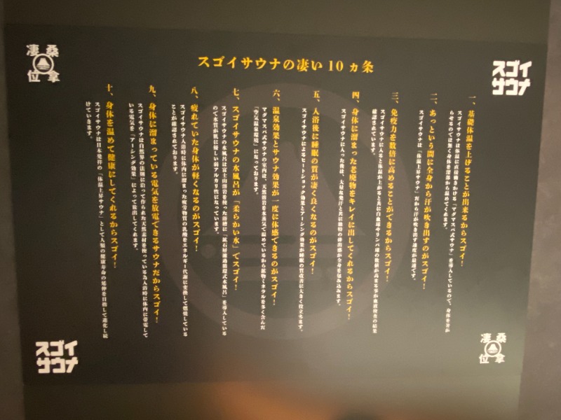 スゴイサウナは湿度が60%以上をキープしているので、温度低めでも高く感じられ、いつものサウナが10分くらいな僕で5~8分で十分なんですよね
