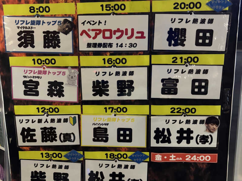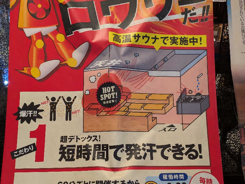 しっかり丸洗いして主浴槽に浸かり、「アーー」の吐息が漏れる。待機列を見て、ここは水風呂ドーピングからの11分前にサ室下段待機。熱さはマイルド。イケそうな気がする。
