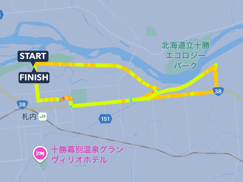 6月の目標であった月間300kmランニングまであと僅か。駐車場に車を停めてひたすら河川敷を東方面にひた走り、十勝川温泉に向かう十勝中央大橋を渡らずにスルーして「魚道観察室ととろーど」なる施設で折り返して18kmほどのランニング完了🏃