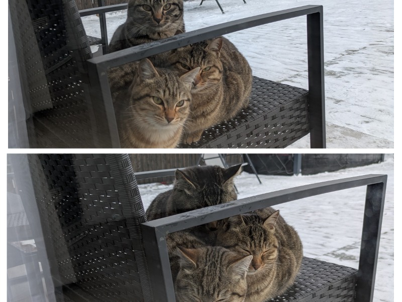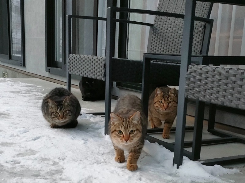 テラスには愛らしい猫さん。全力でプリティを体当たり。生きる方法の選択肢を見る。