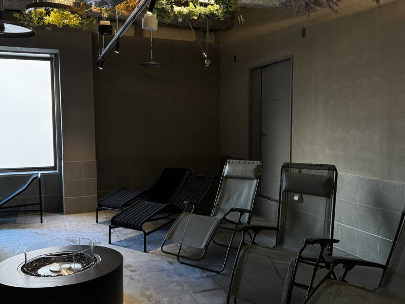 外のバレルサウナそして整いスペース、水風呂もしっかり硫黄の香りがする掛け流しでとても温泉としてもサウナとしてもよかった!!