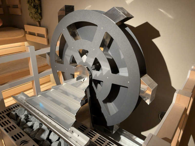 残念ながらマシントラブルで、水車ストーブのオートロウリュが作動せず