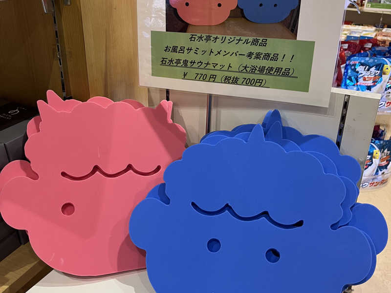 サウナマットが鬼デザインで可愛いなぁと思ってたら売店で売ってたー😍嵩張るけど欲しいなぁ(我慢しました笑)