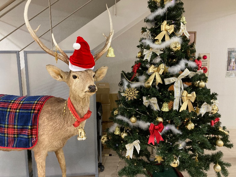 週の真ん中、水曜日!お店のシンボルの鹿の剥製もクリスマス仕様🎄