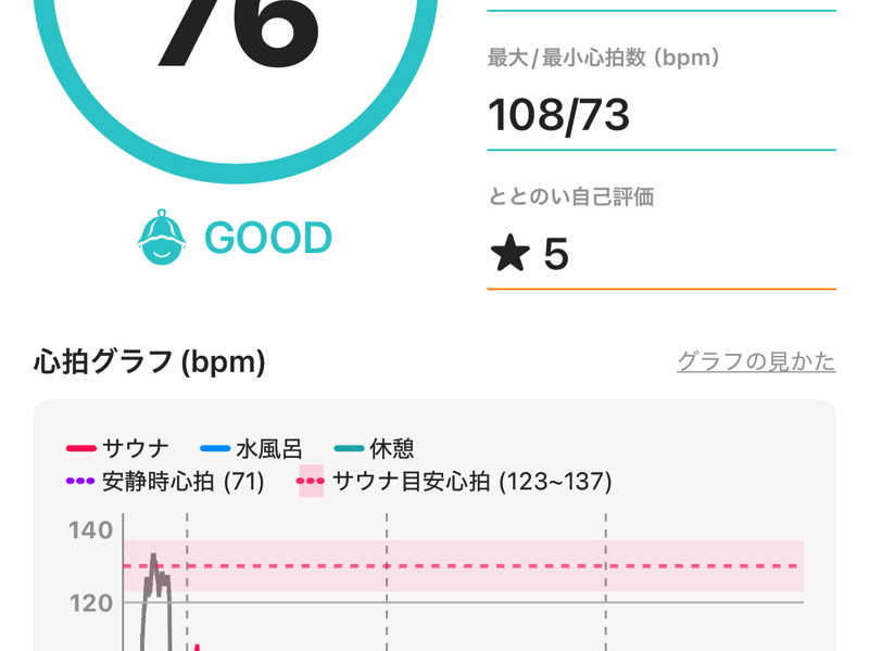 熱さはそれほどでもありませんでしたが、いいタイミングでオートロウリュウを浴びて玉汗→滝汗。