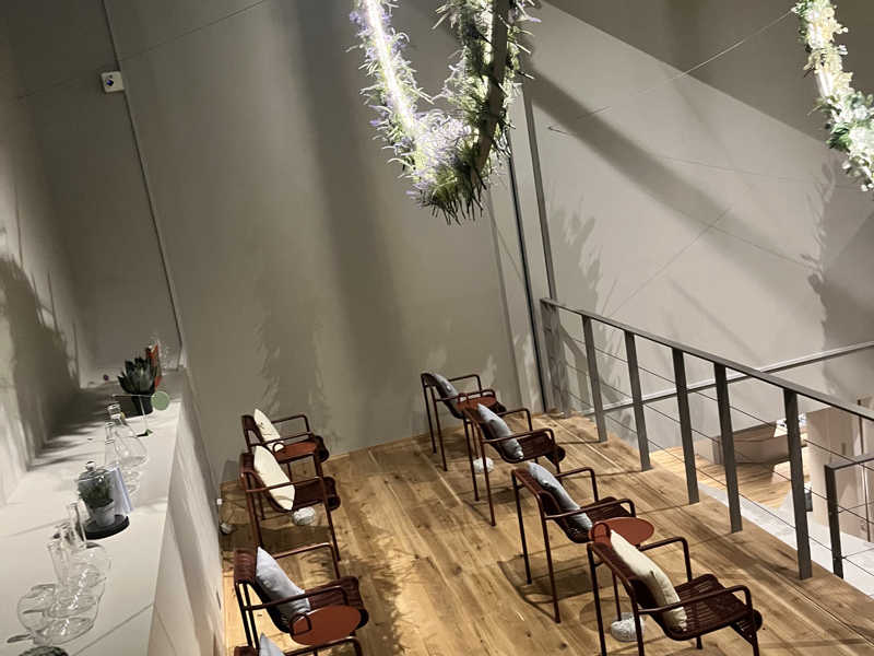 天井にもハーブがレイアウトされ、おそらくロウリュで回った蒸気がこのハーブの香りも出すのだろう。オシャレで素敵だ。