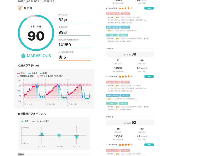 3セットほぼ自分のペースでロウリュをさせていただき。水風呂、脱衣浴もストレスなく、ゆっくり出来ました。