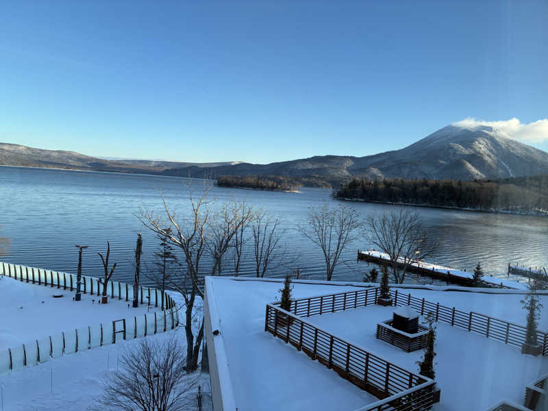 熱せられながら阿寒湖と夜と朝の混じり合った絶妙な時間と色を眺められる贅沢🌃🧖♀️☀