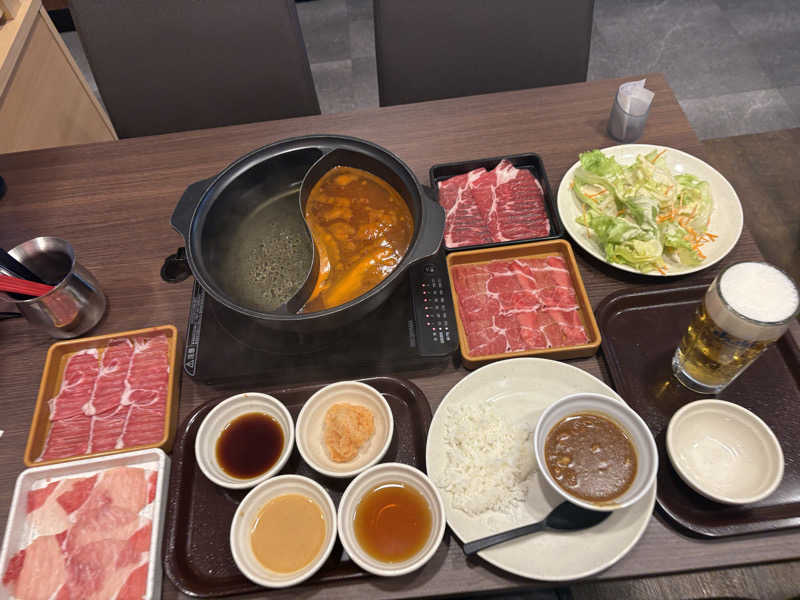 出汁は火鍋の大辛と白出汁です。ビール🍺飲み放題80分