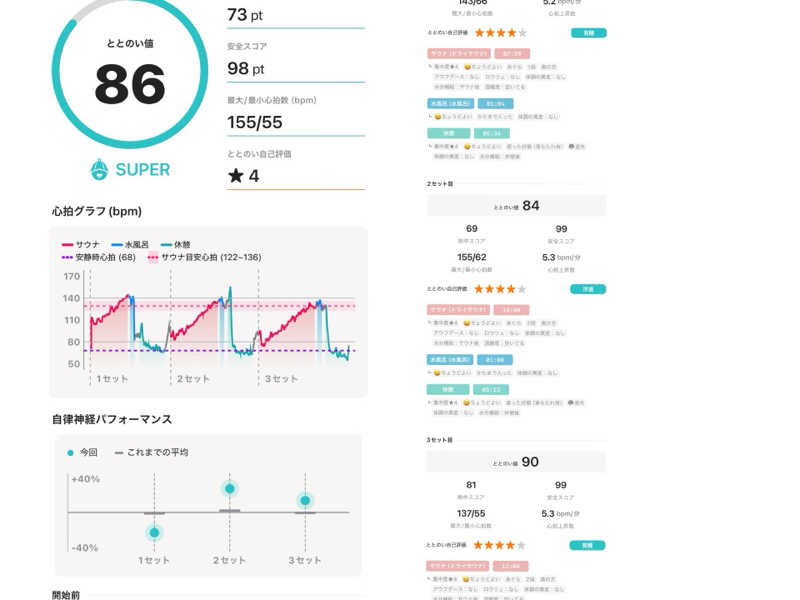 サウナ8分、水💦1分、外気浴12分✖️3セット。