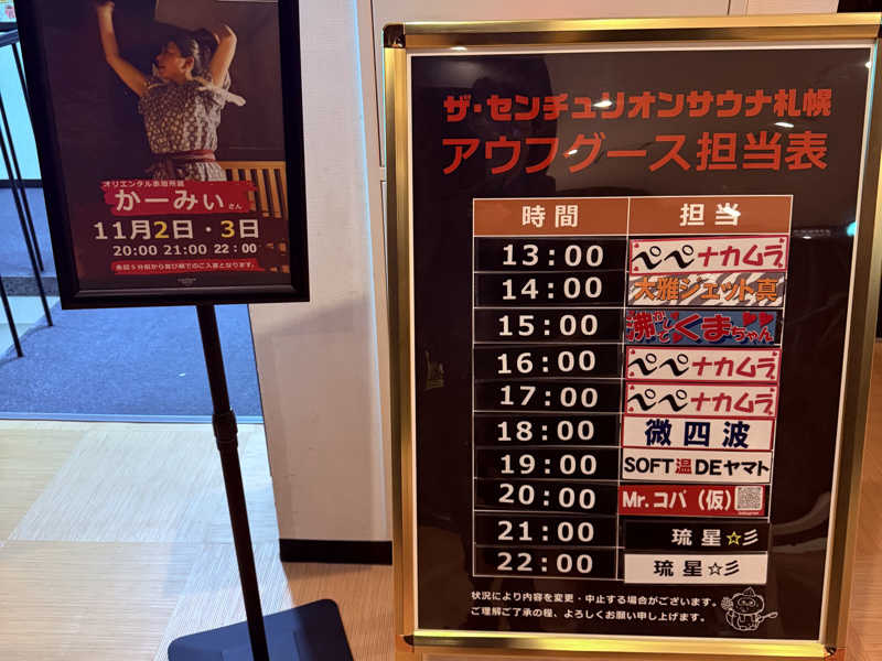 本日のギャラクシーロウリュ20時はミスターコバロウリュ🔥アクロバティックなBGMと共にまずはハルビアのアロマボウル(タマオ)にアロマをどれだけ入れるんだと言わんばかりに並々3杯❗️😳ハルビアに連続でロウリュされて熱い蒸気がどんどん発生する状況で、前半はタオルによるパワフルなアウフグース🔥全身を使った熱い爆風🔥😱💦そして一旦給水タイムを挟んで後半戦へ🔥後半もアロマボウルにバケツから直接投入❗️そしてメトス側にもガンガンアロマ投入❗️🔥さらにはオートロウリュも発動してサウナ室は灼熱🔥😱💦そして後半は団扇で蒸気を攪拌🔥熱風が体に突き刺さって爆汗😱💦🔥コバ君も体力を使い切ってヘトヘトになるほどのロウリュタイム❗️🔥おかげさまでいい汗かいた❗️☺️💦