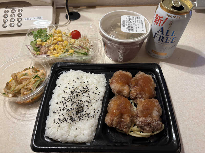 湯上がりサ飯はコンビニ弁当で明日朝早いのと疲れでノンアルコールビール🍺で楽しみました。