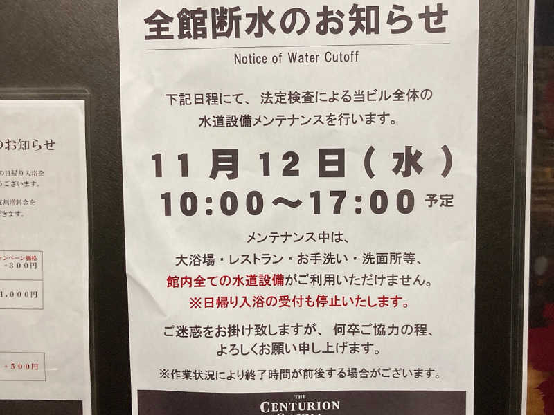 昨日に引き続きシャワーを浴びに滞在時間 30 分「センチュリオン」さん。