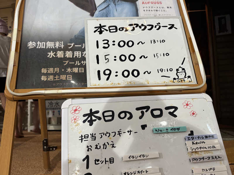 サウナは毎正時から10分ほど、熱波師に寄るパフォーマンスあり。今日は19時に呪術回戦ごじょー先生のコスプレ、20時にヒーローコスプレの🦸と飽きさせません。この時間はもう満席。サ好き者が多く集います。