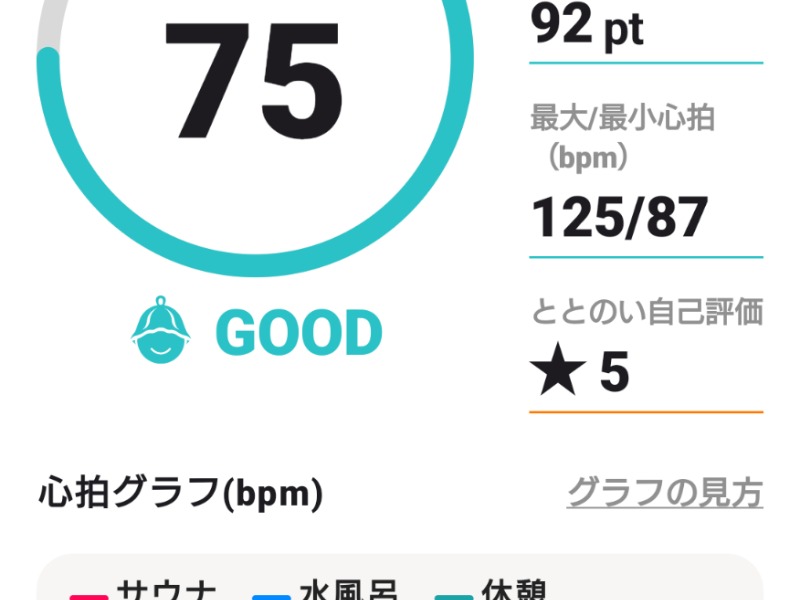 ここのサウナは温度だけ見たらめっちゃぬるいよって思うけど湿度が高いから発汗がヤバい💦