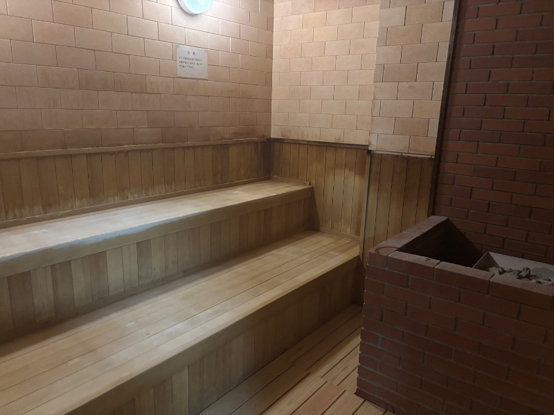 入室すると、なんかシューシューいってるような…?もしかしていまロウリュ終わったとこ?