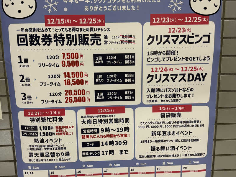 上がって300円でソフトクリーム食べて、年末のバイキング予約して退館しました。