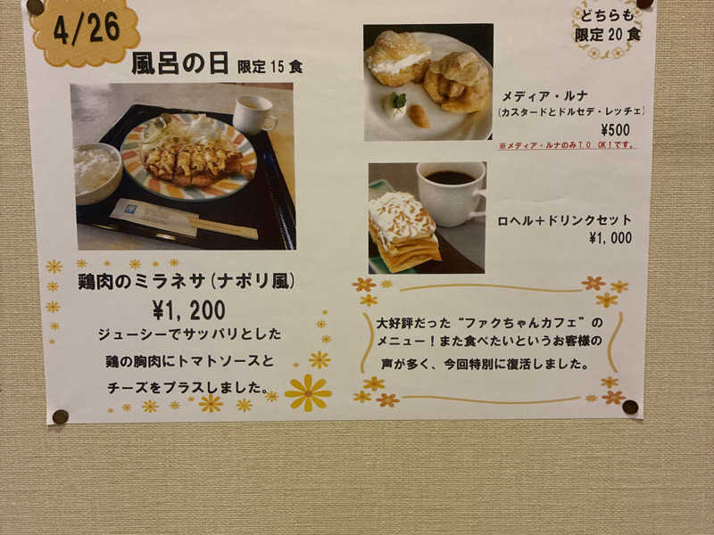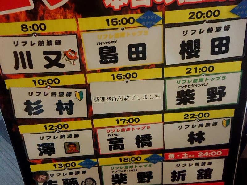 目的のひとつ13:00〜りゅーきイケダ氏の所属元でのAufgussを受けようと一旦休憩…しかし、サ室前で待機するも時間近くになっても始まる気配無し。予定表見間違ったかな…🤔下調べしたつもりだったけど見間違いか…