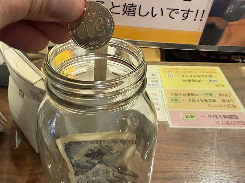 すいません🙇今回すごく感動したので1000円入れようとしましたが千円札無し財布の中5000円札は流石にごめんなさい、500円入れました。証拠写真投稿します。