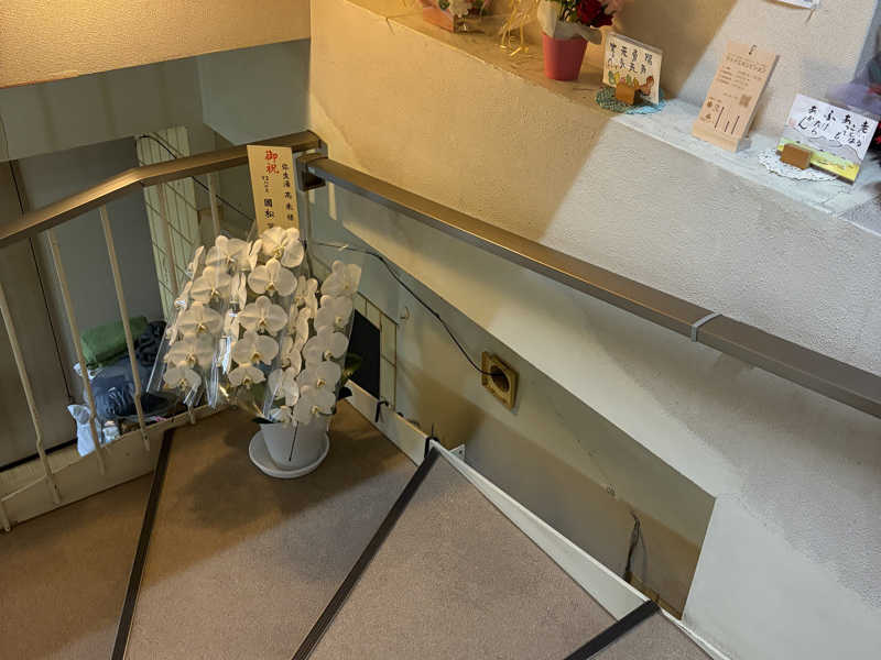 地下には女湯が新設。という事は男湯は2階丸々なんじゃないの?と思いお祝いの胡蝶蘭の横を通り階段を登って行くと扉はそのままだったけど、中は壁がなくなってました。