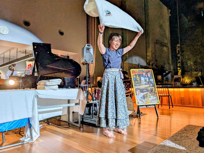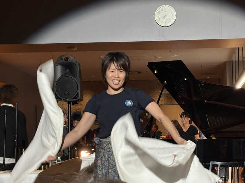 ベルガモットの香りに包まれて始まるクリスマスソング🎵コミカルなステップも入り、熱子さんが楽しそうにタオルを振って、お客さんはみんな笑顔に☺️