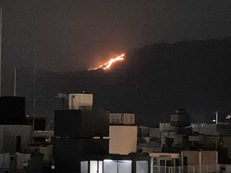 屋上の露天スペースでととのえてたら、大文字焼き始まって観察!運いい!