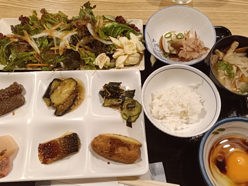 それでも多彩なおばんざいバイキングは健在、味噌汁でなく豚汁ってところもポイント高い