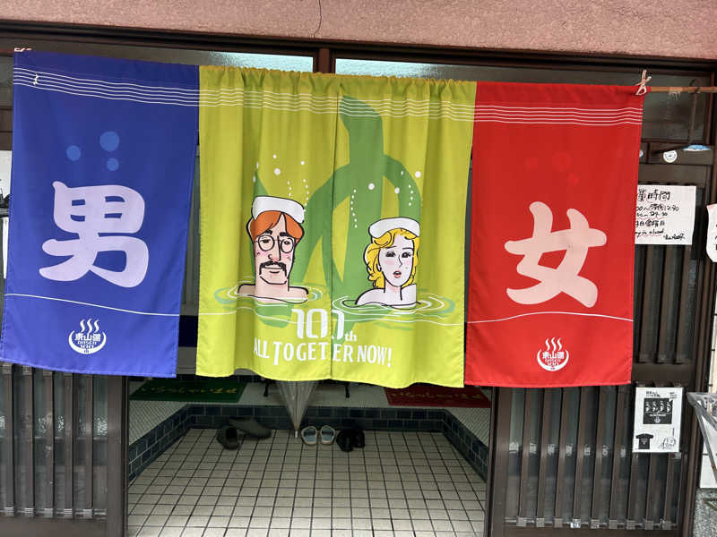 暖簾も脱衣所もビートルズ愛❤️あふれる。”all 湯need is love”