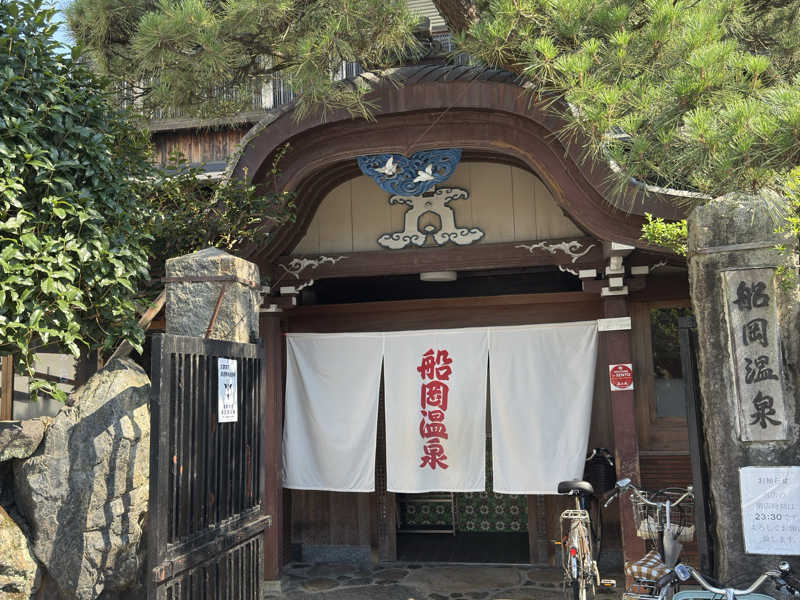 水風呂。サ室を出てすぐ左手にある。橋のかかった趣あるしつらえに、岩の壁から打たせ湯のように吐水している。汗を流し、水風呂いただきます。おお…やさしい。そして湯船が深い。吐水の勢いがあるので羽衣は作りづらいが、全く気にならない。水面を打って飛び散る水滴が頭や顔にかかって心地よい。身体を伸ばして京都のお水を全身で堪能する。
