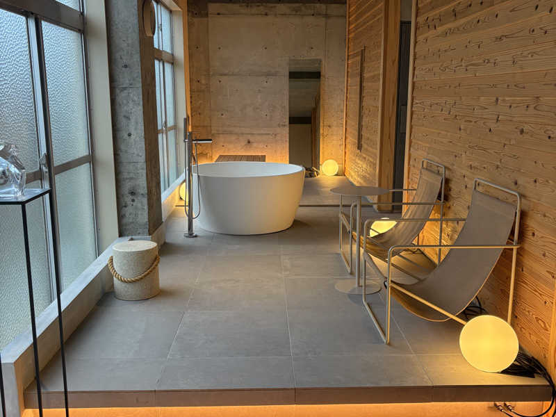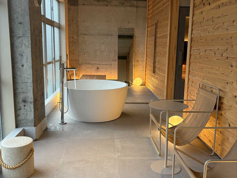 これまでのプライベートサウナ(内気浴のみ)では一番広いかも。水風呂(バイブラ付き)はもちろん、湯船がさらにもう一つあります。