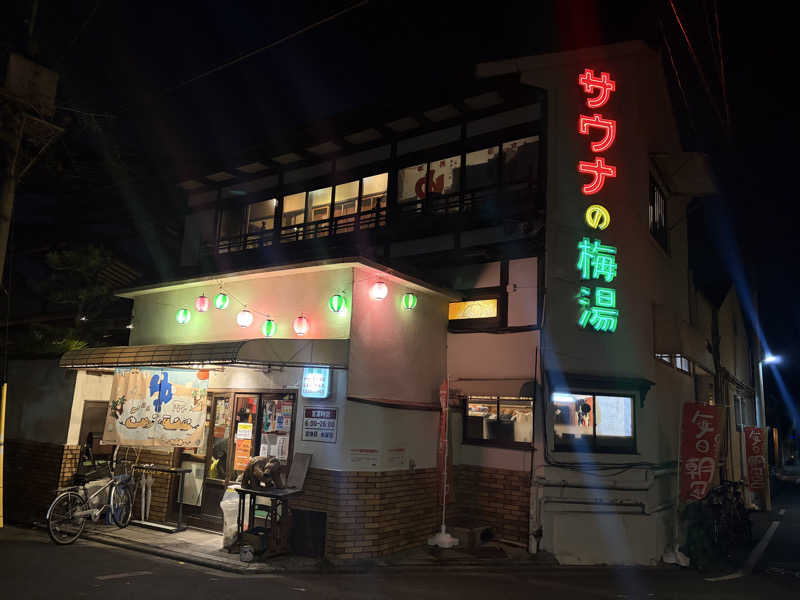 調べ間違えて河原町五条で降りてしまい、余計に歩くロスタイムもありながら京都サウナの聖地・梅湯に辿り着き、あのネオン看板をみたら、全部飛びました。やっぱり梅湯は夜。