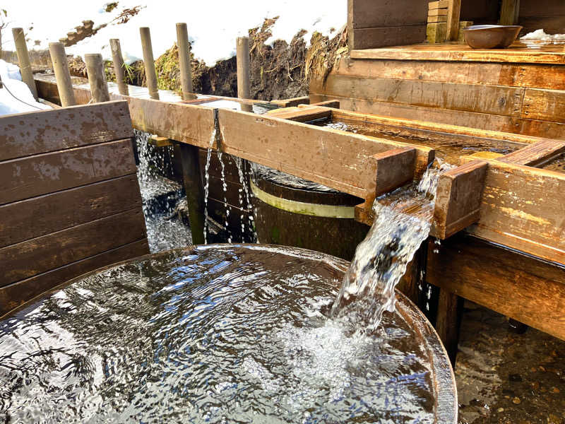 今日使える雪解け水の水風呂は