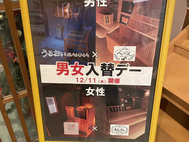 KURUMIさんの投稿見まして、うるおいサウナで下茹でしてからべっぴんサウナへ。下茹でありだったので10分入れず…7分程度で脱出💨早々にゆでダコ🐙になり、3台になったブレインスリープで早々にととのい✨😇✨天気もよくて心地良かったぁ☺️外気浴も寒くなってきたので7分程度で壺湯へ♨️お湯に浸かりながら今日もサミソを✨至福空間でした〜☀️