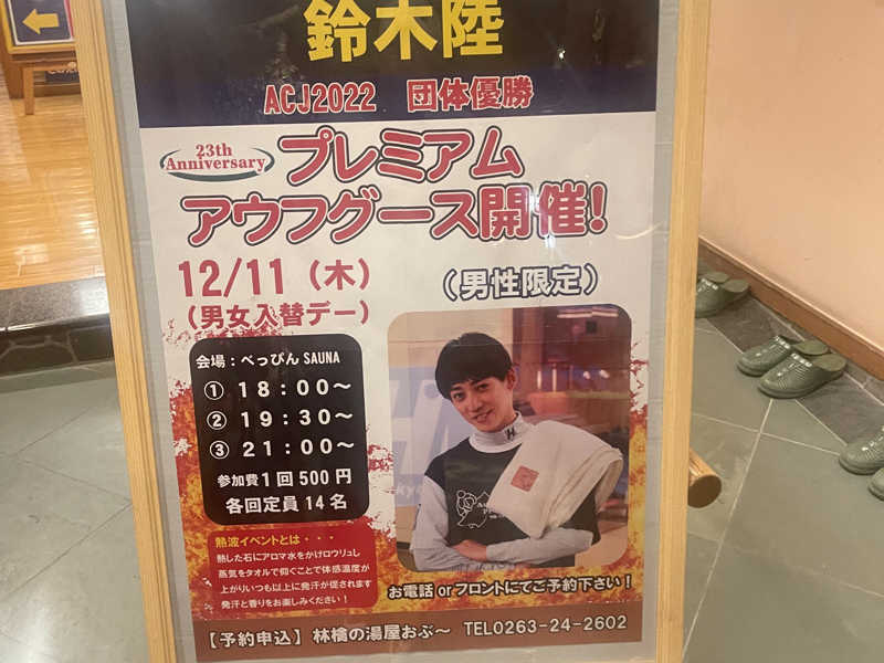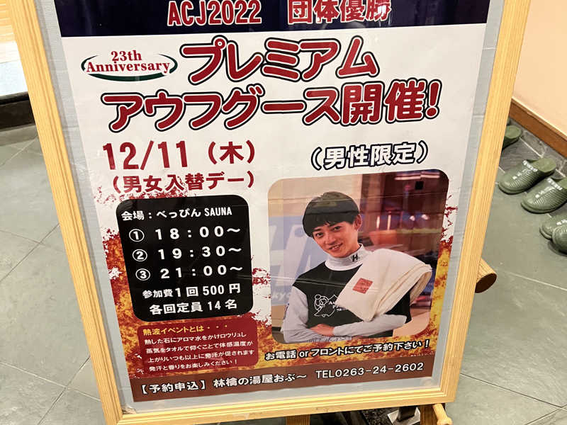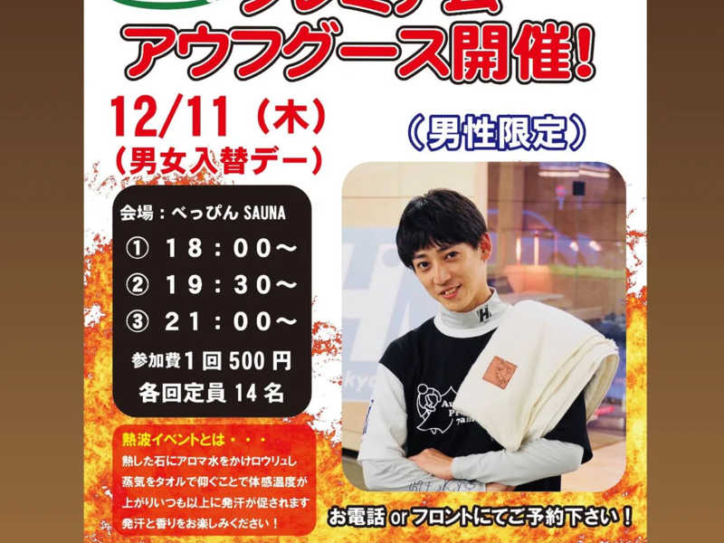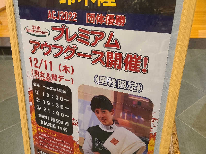 施設の23周年イベントの一環としてスカイスパYOKOHAMA所属の鈴木陸さんのアウフグースイベントがべっぴんサウナで行われるとの事で17時イン