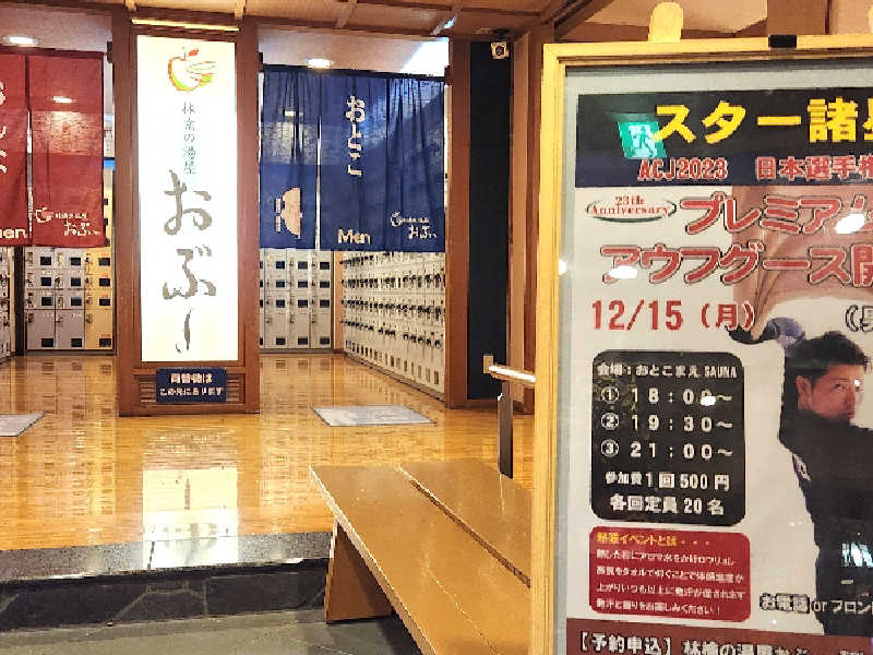 男湯おとこまえサウナ、女湯べっぴんサウナで初熱波イベントのため、日替わりで豪華ゲストが入れ替わり立ち代わりにやってくるおぶ~さん。