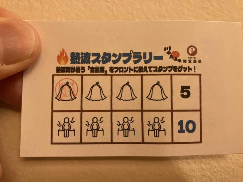 熱波スタンプラリーですが、熱波中に合言葉を聞いて、それを受付で店員さんに伝えるとスタンプゲットですが、ととのい過ぎると合言葉がとびます。なんとか思い出してスタンプゲットしました。アホにはきついイベントです。