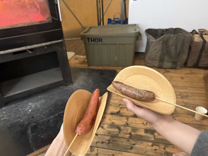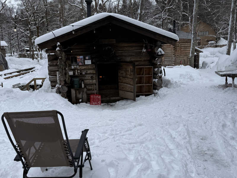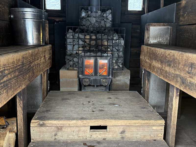 内気浴テントスペースには温かいお茶と飴とストーブがあって、一度座ると立てなくなる、人をダメにする椅子が沢山。