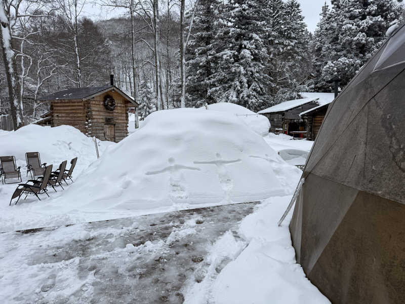 先に受付を済ませて施設内を散策。雪は止んでいて、そこかしこにふんわり雪がこんもりと。
