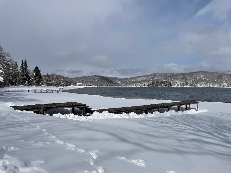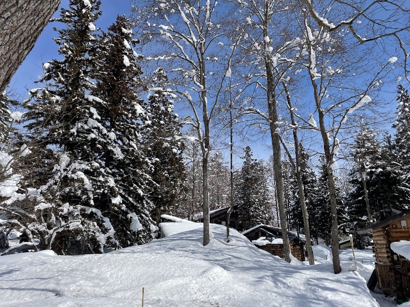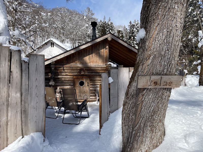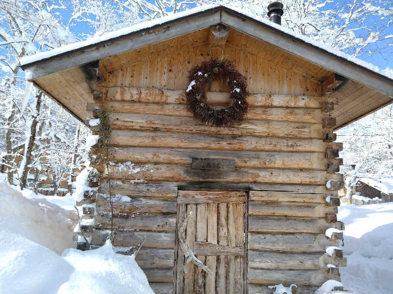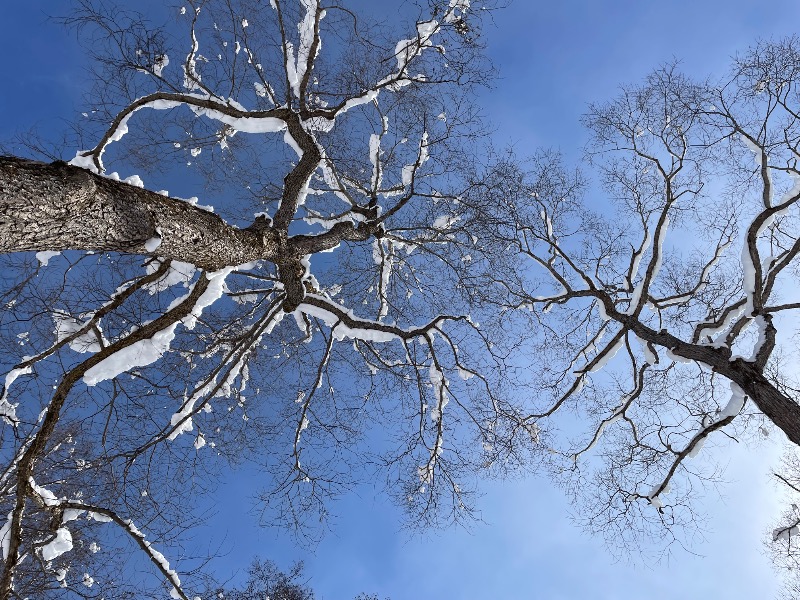 外気浴ではインフィニティチェアで空を見ると、着雪した木々から雪が落ちてきてその様子が情緒的