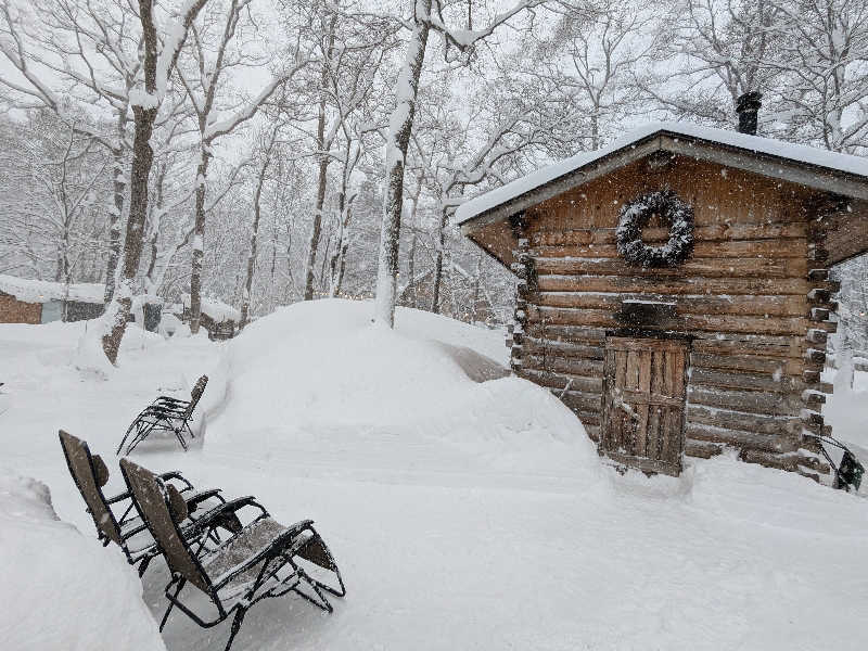 炭と化した以前のサウナ小屋で白銀の景色を眺めながらトトノイ✨️